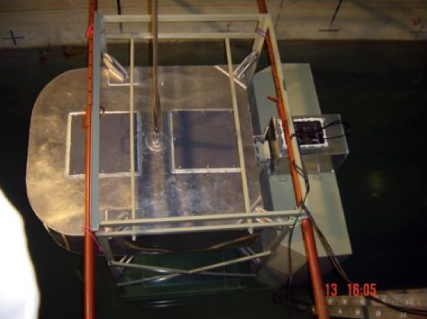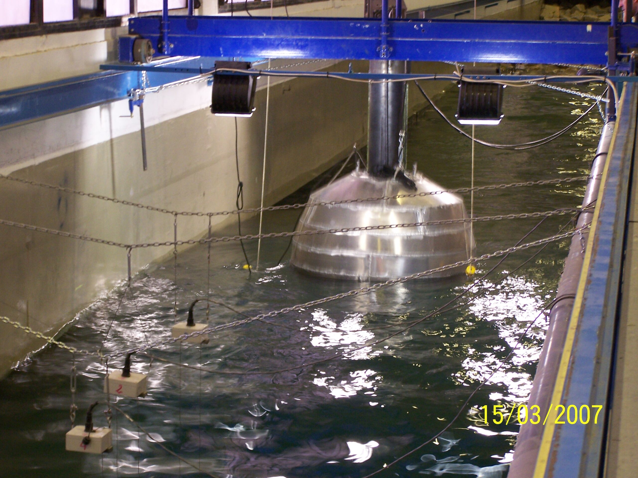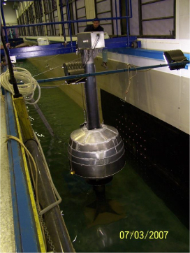 Se realizó un ensayo con un modelo a escala 1:20 de una central eléctrica flotante en el canal de oleaje del Laboratorio de Ingeniería Marítima de la UPC en Barcelona.
